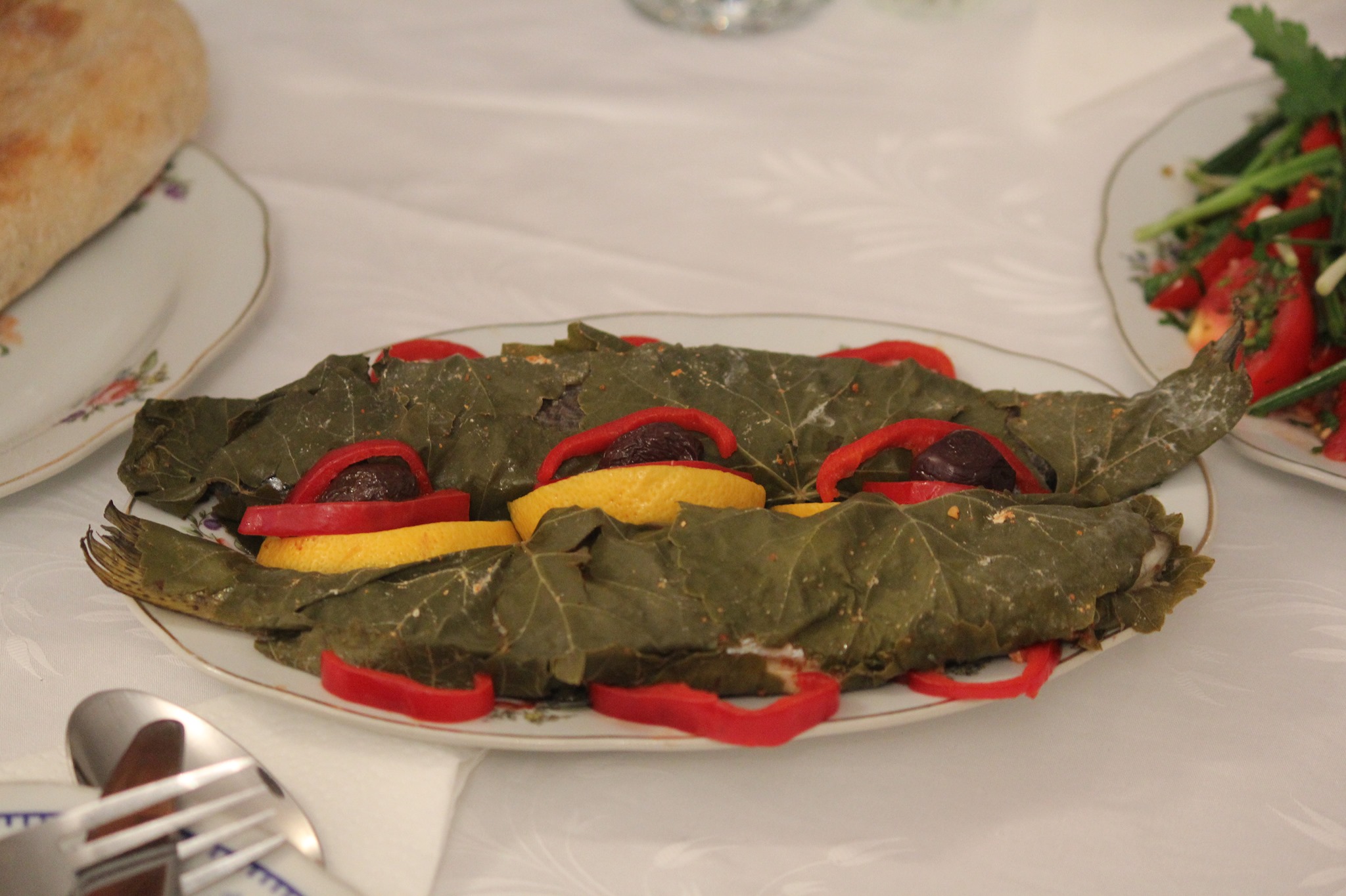 კალმახი ვაზის ფოთოლში