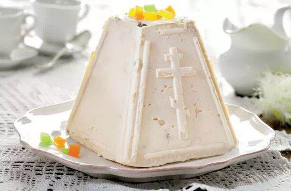 - პასკის სპეციალურ ფორმაში (ან საწურზე დადებულ დოლბანდში) ჩაასხით მზა მასა და ზემოდან დააფარეთ რაიმე მძიმე საგანი. შედეთ მაცივარში მინიმუმ 12 საათით, რომ კარგად დაიპრესოს ფორმაში;