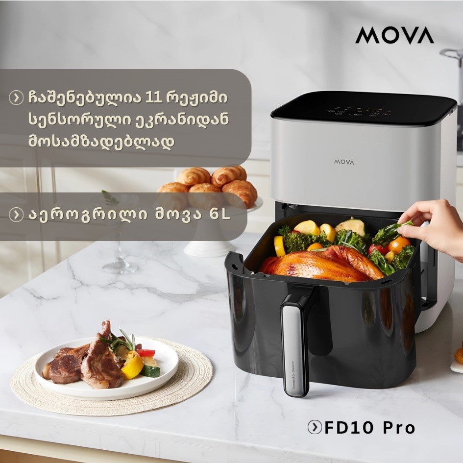 MOVA FD10 Pro 6L — კომპაქტური და პრაქტიკული ვარიანტი მათთვის, ვისაც სივრცის ეკონომია სჭირდება: