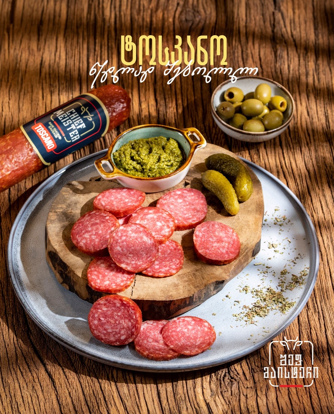 "ტოსკანო" — ეს არის ნედლად შებოლილი ძეხვი, რომელიც დამზადებულია ბუნებრივი გამოშრობის მეთოდით, რაც მის გემოს კიდევ უფრო ღრმას და დახვეწილს ხდის.იდეალურია მშრალი წითელი ღვინის თანმხლებად, ყველისა და ზეთის ხილთან ერთად. გემო რბილი, არომატი ინტენსიური — ზუსტად ისეთი, როგორიც ტოსკანას ძველი რეცეპტები მოითხოვს.