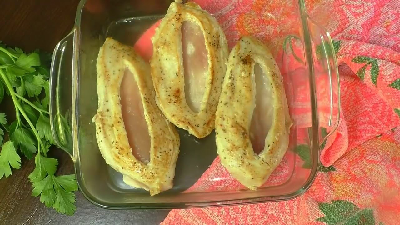ქათმის ფილე გაჭერით ცენტრში, მაქსიმალურად გადახსენით გვერდებზე ისე, რომ ძირი არ ჩაიჭრას (მიეცით აჭარული ხაჭაპურის ფორმა). შეაზავეთ მარილითა და პილპილით. ამოჭრილი ადგილი ამოავსეთ ალუმინის ქაღალდით (ფოლგით). დაბრაწეთ ცხიმიან ტაფაზე (ნუ შეწვავთ, დაბრაწეთ). დაბრაწული ფილე გადაიტანეთ ცეცხლგამძლე ჭურჭელში. დაჭერით ოხრახუში წვრილად. დაჭერით ყველიც რბილი ყველი, იდეალურია ფეტა. ჯამში მოათავსეთ დაჭრილი ოხრახუში, ყველი და კვერცხის ცილა. ჩანგლით კარგად ამოურიეთ და გადაანაწილეთ ეს მასა ქათმის ფილის გაჭრილ ნაწილში. ფილეს გვერდები „გაწიეთ“ ხის ჩხირით, რომ ღუმელში ფილე არ შეიკრას. გამოაცხვეთ 200 გრადუსზე 10 წუთით. შემდეგ გამოიღეთ, თავზე მოაყარეთ მაგარი ყველი (ისეთი, რომ დადნეს) და ფილეს ცენტრში მოათავსეთ კვერცხის გული. შეაბრუნეთ ღუმელში 5 წუთით. გემრიელად მიირთვით!