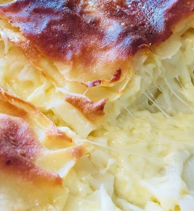 1. ათქვიფეთ კვერცხი და დაuმატეთ: მაწონი, მარილი და ფქვილი. დააყოვნეთ მზა მასა 20წთ–ით. 2. გაყავით 7 ნაწილად. ამ შვიდი ფენიდან, ორი არ იხარშება. 3. გააბრტყელეთ პირველი ფენა და დადეთ საცხობ ფორმაზე. შემდეგ, წაუსვით გამდნარი კარაქი. 4. ჩაყარეთ ადუღებულ წყალში ცოტა მარილი და ცომი მოხარშეთ დაახლოებით 1 წუთის განმავლობაში. 5. მოხარშული ფენა დადეთ და ისევ წაუსვით გამდნარი კარაქი. მოაყარეთ ყველი. ყველა ფენა ამ თანმიმდევრობით გააკეთეთ. 6. ბოლო ფენა უნდა იყოს დიდი. ჩაუკეცეთ გვერდები, ზემოდან წაუსვით გამდნარი კარაქი. დაჭერით გამოცხობამდე და გამოაცხვეთ 200°ზე, დაახლოებით 1საათი.
