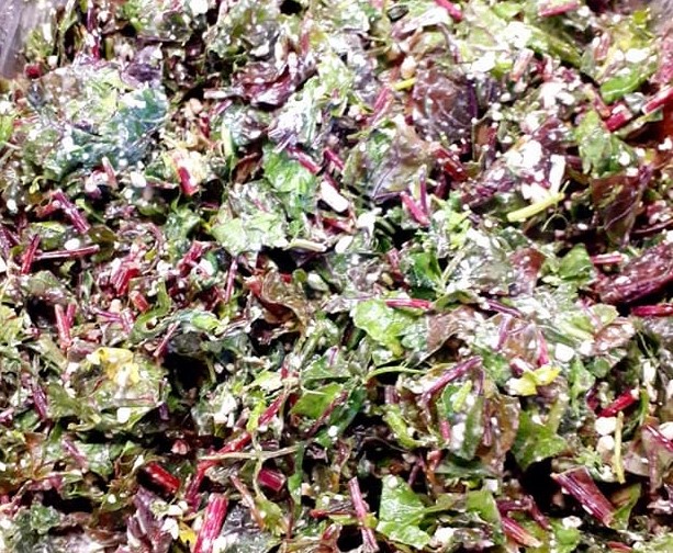 გარეცხეთ ჭარხლის ფოთლები, დაჭერით, დააყარეთ მარილი და დააყოვნეთ 2 საათით. შემდეგ კარგად გაწურეთ. დაუმატეთ დაჭრილი ქინძი, კამა, 2 კოვზი არაჟანი და გახეხილი ყველი თვალის ზომით. შიგთავსიც მზადაა. მაწონი და მარგარინი კარგად აურიეთ და დაუმატეთ 1ჩკ (არასავსე) სოდა და ამავე დოზის ძმარი. დააყარეთ ფქვილი და მოზილეთ ნაზი ცომი. შედგით მაცივარში შედეთ 40 წუთის განმავლობაში. ასეთი ცომი შეგიძლიათ შეინახოთ საყინულეში და როცა მოგინდებათ, მაშინ გამოიყენოთ ხაჭაპურისთვის ან ლობიანისთვის. ცხობისას ზევიდან გადაუსვით კვერცხის გული.