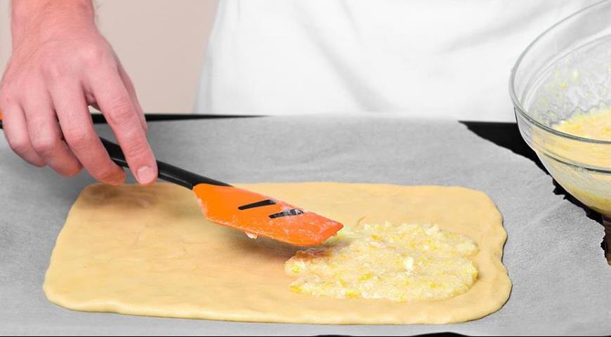 გახეხეთ ლიმონი და განათავსეთ მდუღარე წყალში. ადუღეთ 5-7 წუთით, ამოიღეთ, გააგრილეთ. შემდეგ გახეხეთ ან დაჭერით ნაჭრებად და დააბლენდერეთ - ძალიან მნიშვნელოვანია ლიმონებიდან ამოიღოთ ყველა თესლი, წინააღმდეგ შემთხვევაში მწარე გამოგივათ. დაადნეთ კარაქი, მაგრამ არ აადუღოთ. შეუთავსეთ ლიმონის მასა ათქვეფილ კვერცხს, კარაქსა და შაქარს. ცომისთვის ცივი კარაქი დაჭერით პატარა ნაჭრებად. დაამატეთ ფქვილი, წაუსვით კარაქი და დანით დაჭერით. მოზილეთ ცომი, დაამატეთ მცენარეული ზეთი და დაახლოებით 0,5 ჭიქა ყინულიანი წყალი. ცომი დაამუშავეთ ბურთულებად, გაყავით 2 არათანაბარ ნაწილად, შეფუთეთ და მოათავსეთ მაცივარში, 30 წუთის განმავლობაში. მოათავსეთ საცხობი ქაღალდი საცხობ ფორმაზე. ცომის ორივე ნაჭერი გააბრტყელეთ ფენებად. განათავსეთ ცომი ისე, რომ ბოლომდე არ დაფაროთ ქაღალდი. ცომის მეორე ფენა მოათავსეთ მთლიანად და ფრთხილად მოაჭერით კიდეები, რომ არ გადმოიღვაროს შიგთავსი. წაუსვით კვერცხი და გააკეთეთ ნასვრეტები, აცხვეთ 180 ° C ტემპერატურაზე, სანამ ოქროსფერი არ გახდება, დაახლოებით 40 წუთი.