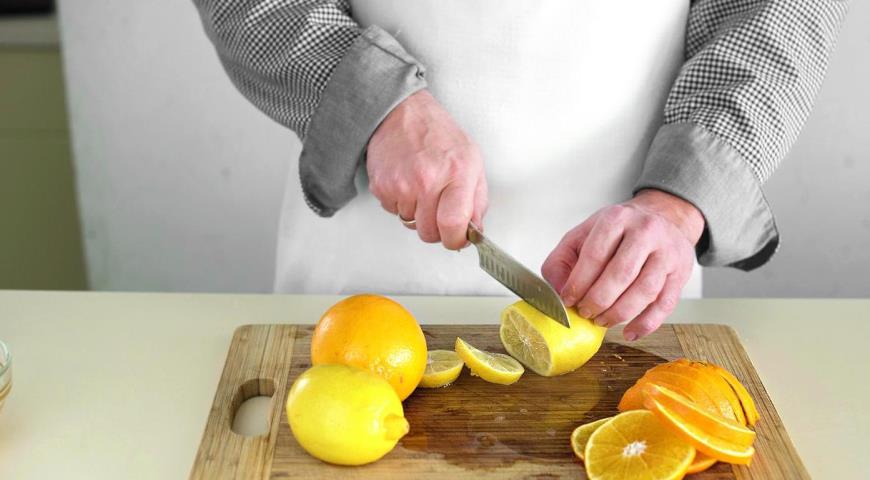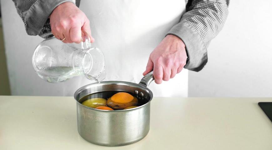 გარეცხეთ ლიმონი და ფორთოხალი, მოათავსეთ ქვაბში, დაასხით ცივი წყალი, დაამატეთ მწიკვი მარილი. ციტრუსები ჩაძირული უნდა იყოს. მოადუღეთ საშუალო ცეცხლზე, შემდეგ შეამცირეთ ცეცხლი და მოხარშეთ 15 წუთის განმავლობაში. ხილი ამოიღეთ მდუღარე წყლიდან, დადეთ სამზარეულოს დაფაზე და გააგრილეთ. ჯერ დაჭერით წრეებად, შემდეგ კი პატარა ნაჭრებად. შეინახეთ წვენი, რომელიც გამოდის დაჭრისას. ქვაბში გაათბეთ თაფლი და ციტრუსის გაჟონილი წვენი, დაამატეთ ციტრუსის ნაჭრები. ადუღეთ საშუალო ცეცხლზე და მოხარშეთ, მოურიეთ 15 წუთის განმავლობაში. შემდეგ, დაელოდეთ გაგრილებას და გემრიელად მიირთვით.