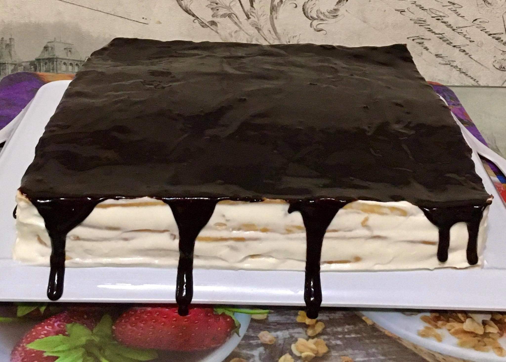 ათქვიფეთ კვერცხი და შაქარი, დაუმატეთ გამდნარი კარაქი, შემდეგ არაჟანს დამატებული სოდა, ბოლოს ფქვილი. მასა განკუთვნილია ღუმელის სტანდარტული საცხობი ფორმისთვის. გაყავით 5 ტოლ ნაწილად, გააბრტყელეთ და გამოაცხვეთ, მალე ცხვება და მუდამ აკონტროლეთ. შიგთავსის მოსამზადებლად, ვაშლი გახეხეთ, მოასხით ლიმონის წვენი, მოათავსეთ ქვაბში, დააყარეთ შაქარი და მოშუშეთ ნელ ცეცხლზე, შაქრის სრულ გადნობამდე, ბოლოს კი დარიჩინი. არაჟნის კრემის მოსამზადებლად საწურზე დააფინეთ ოთხად გადაკეცლი მარლა, მოათავსეთ მასზე არაჟანი, შეფუთეთ და მაცივარში მოათავსეთ 7 საათის განმავლობაში, შემდეგ დაუმატეთ შაქრის პუდრი, ვანილი და ათქვიფეთ. ფირფიტებზე გადაანაწილეთ ვაშლის მასა და კრემი მონაცვლეობით, ბოლოს კი მინანქარი მოასხით. მინანქრისთვის მოცემული ინგრედიენტები წამოადუღეთ, ბოლოს დაუმატეთ ზეთი და მოასხით ნამცხვარს.