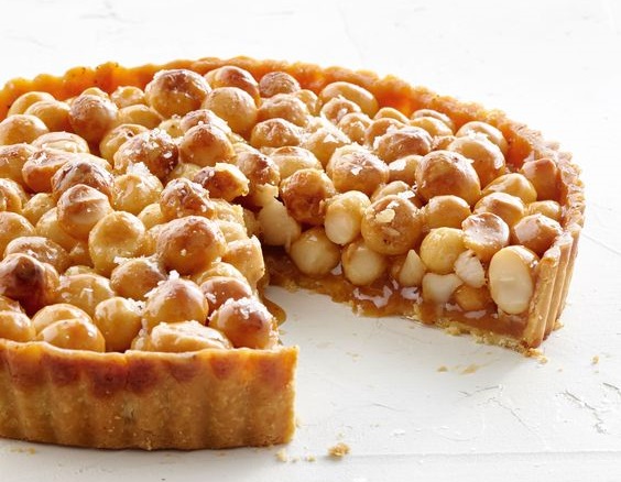 5. ლერწმის შაქრით მოჭიქული მაკადამიასა და ფინიკის ტარტი