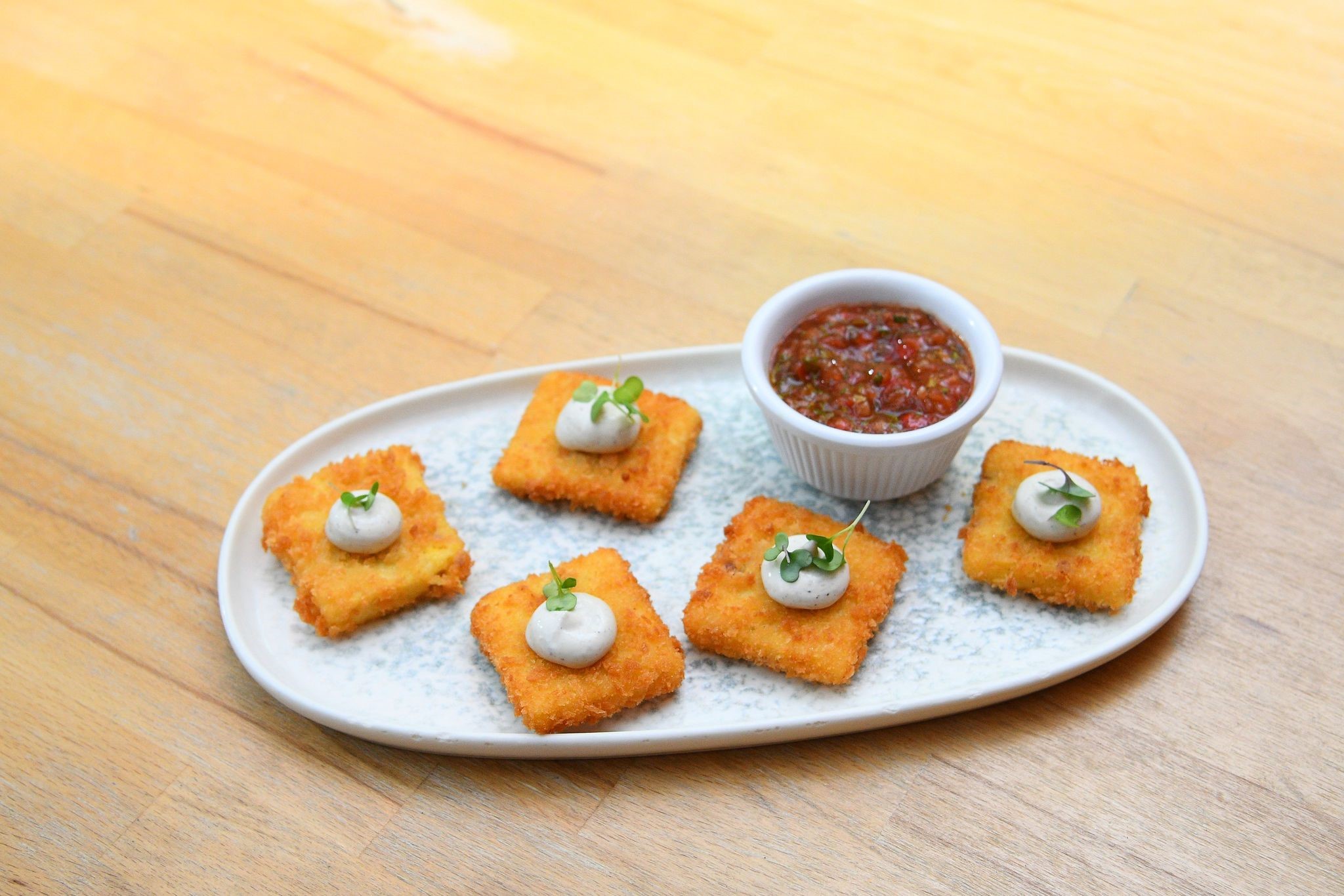 პოლენტას ხშირად უწოდებენ იტალიურ ღომს. სწორედ ამიტომ ქართველებისთვის ის განსაკუთრებით საინტერესო დასაგემოვნებელია. პოლენტას კროკეტებისთვის თავად პოლენტა არის მოყვანილი, დაპრესილი და პანირებული. ზემოდან აქვს ტრიუფელის მაიონეზი. ზოგადად პოლენტასა და ტრიუფელის კომბინაცია საინტერესო გემოს გვთავაზობს. მისი სიმძაფრის გასანეიტრალებლად კი აპეტაიზერი სერვირებულია პომიდვრის სალსათი.