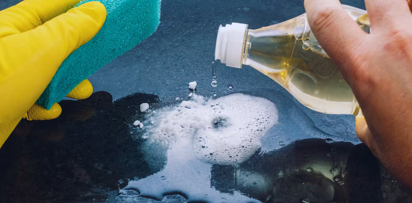 - მოხეხეთ ნადები ფუნჯით ან ღრუბლით და შემდეგ ჩამორეცხეთ წყლით.