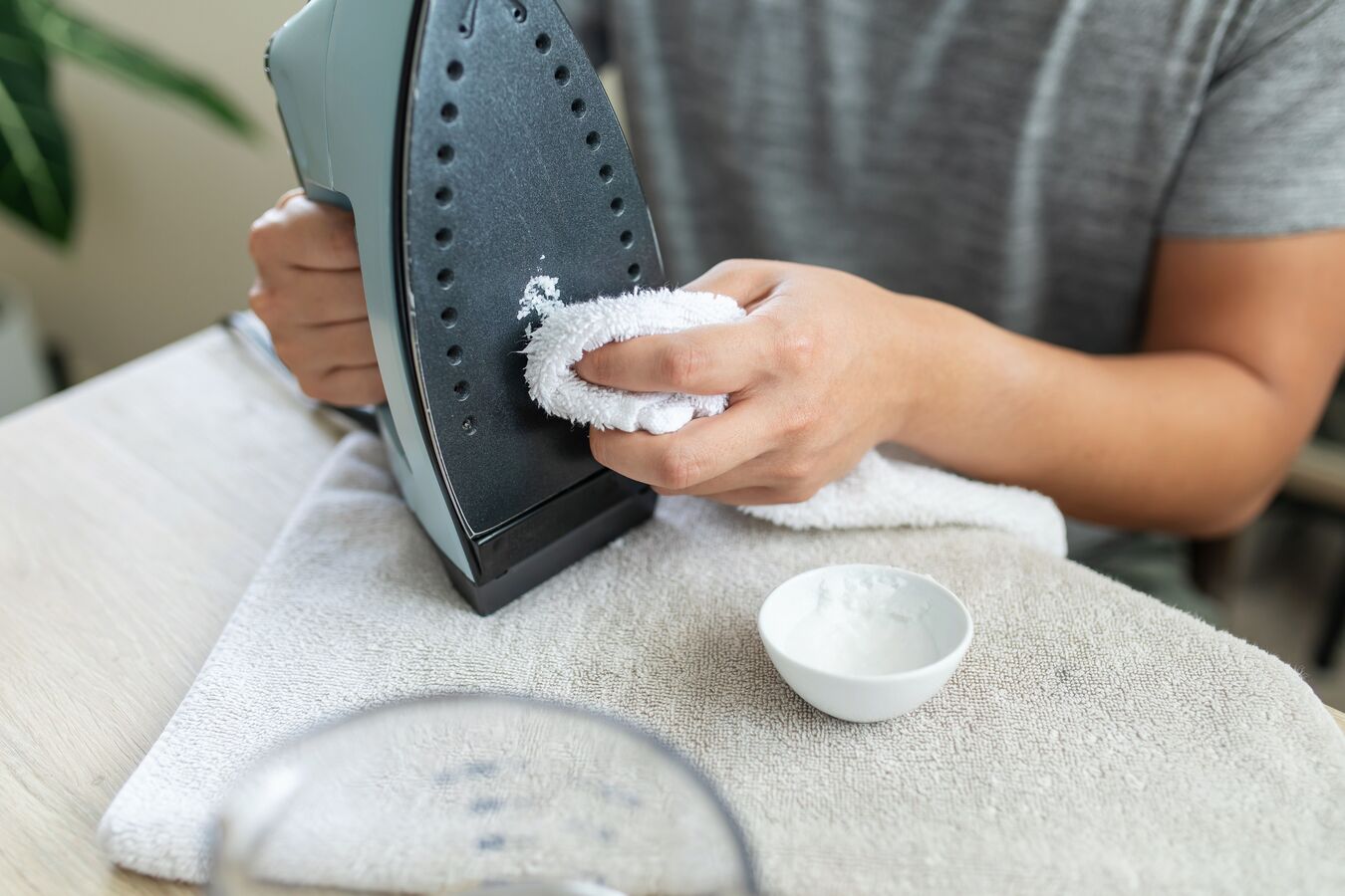 - ნარევით გაწმინდეთ უთოს ძირი რბილი ქსოვილის დახმარებით.