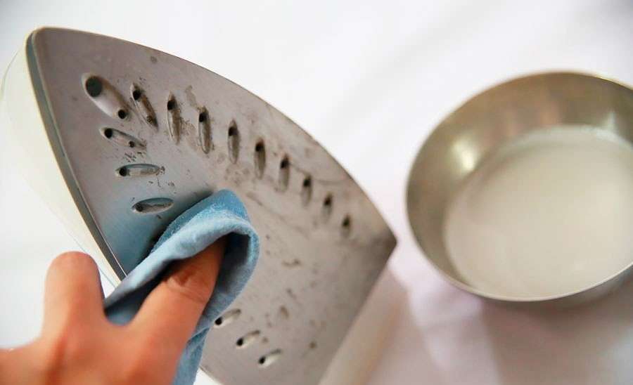 - სითხეში ჩადეთ რბილი ქსოვილი და გაასუფთავეთ უთოს ძირი (ცივი უთო).