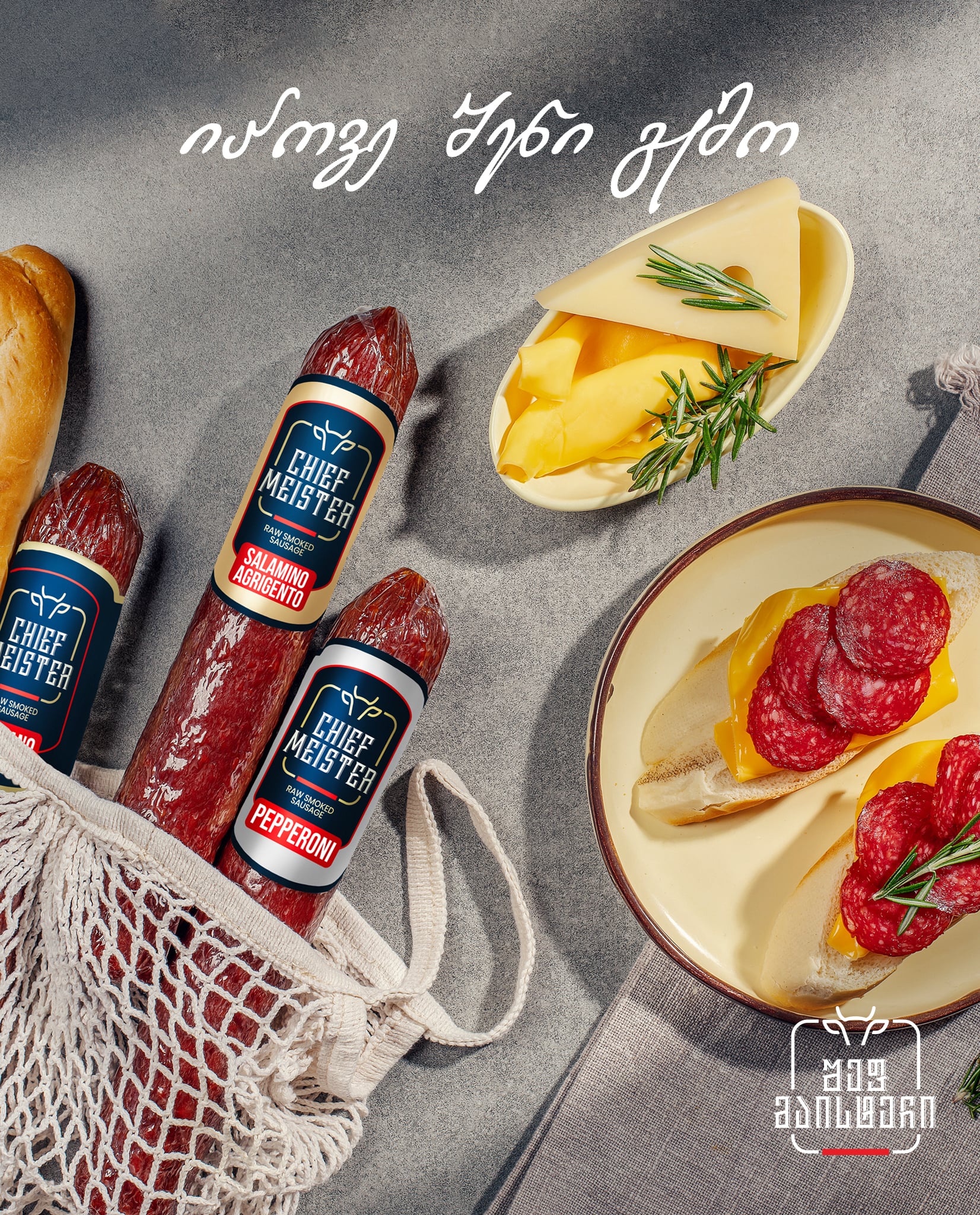 ქართულ ბაზარზე ხორცპროდუქტების ასორტიმენტი თითქოს მრავალფეროვანია – სუპერმარკეტებში მრავლად გვხვდება ძეხვები, მათ შორის შებოლილი პროდუქტები, თუმცა ხარისხის, გემოსა და ავთენტურობის იდეალურ ბალანსს იშვიათად შეხვდებით. ჩემთვის სასიამოვნო აღმოჩენაა ახალი ქართული პრემიუმ ბრენდი „შეფმაისტერი“, რომელიც აწარმოებს ნედლად შებოლილ ძეხვეულს, ევროპული ტექნოლოგიებითა და ავთენტური რეცეპტურით. ძეხვების ასორტიმენტი საკმაოდ შთამბეჭდავია, დაახლოებით ცხრა განსხვავებული სახეობაა, თითოეული მათგანი იტალიური რეგიონის შთაგონებითაა შექმნილი. სახელებიც შესაბამისი აქვს: სალიამინო აგრიჯენტო, სალიამი დი ნაპოლი, სალიამი პიკოლინი, სალჩიჩონი და სხვა.